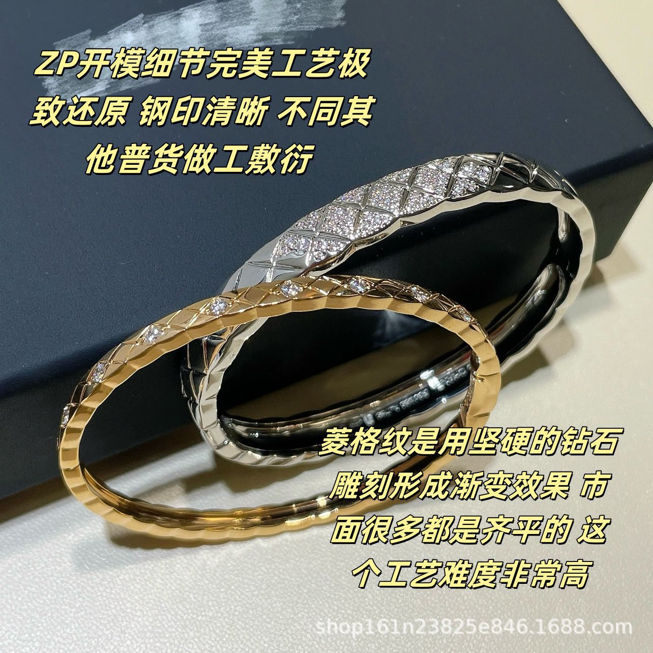 Cocoruch Quilted Pattern Bracelet High Version Chanel Style Open Wide Narrow Version Full Diamond Ring Fine Craftsmanship Jewelry