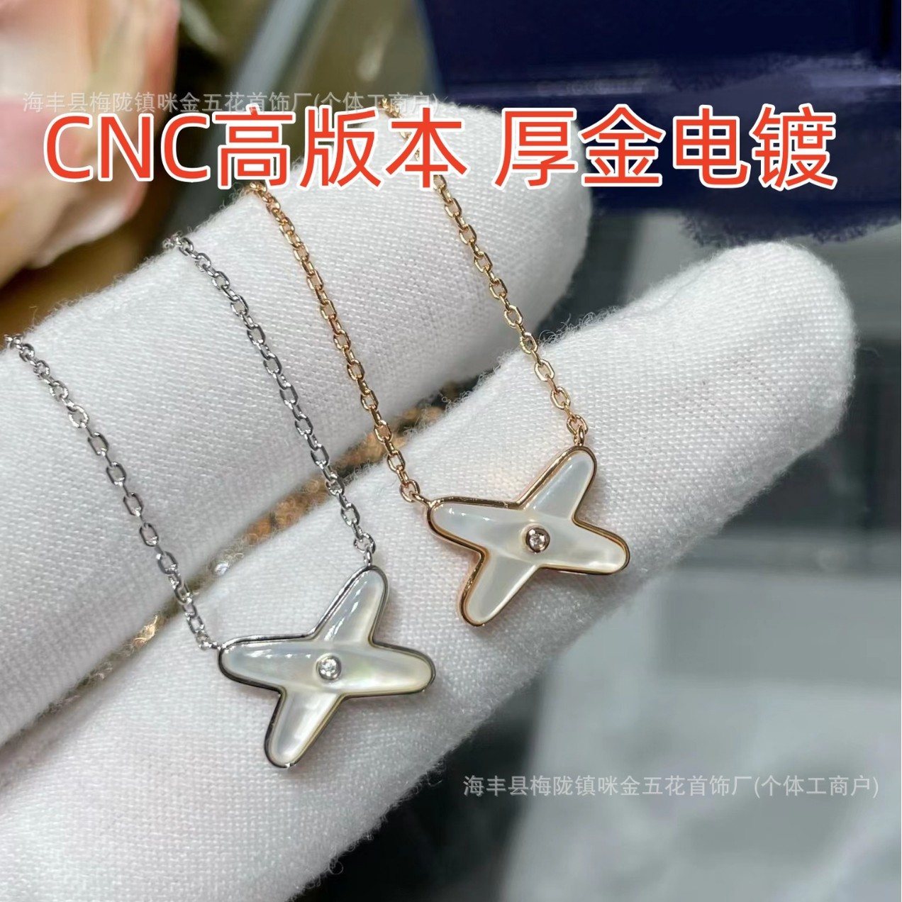 Shangmei Cross White Fritillary Necklace Women's Light Luxury Niche 18K Rose Gold Casual High-Quality Clavicle Chain Necklace