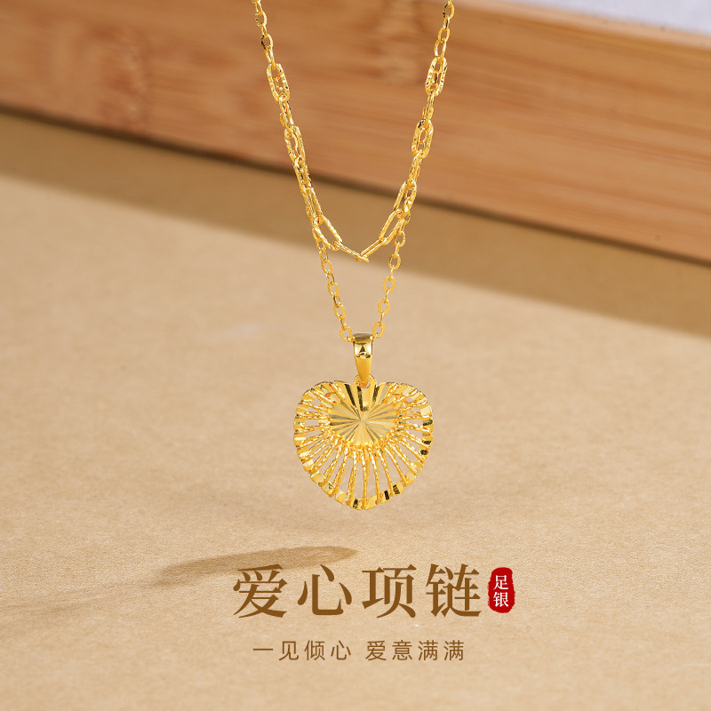 Exquisite Love Titanium Steel Necklace for Women, Versatile Light Luxury Niche High-End Clavicle Chain That Does Not Fade, Trendy and Cool Sexy Jewelry