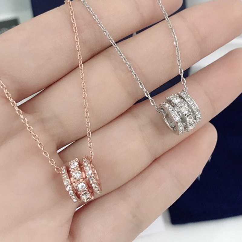 [New Product] Shijia 1:1 Romantic Three-Ring Transfer Bead Necklace Personalized Full Diamond Small Waist Three-Ring Necklace