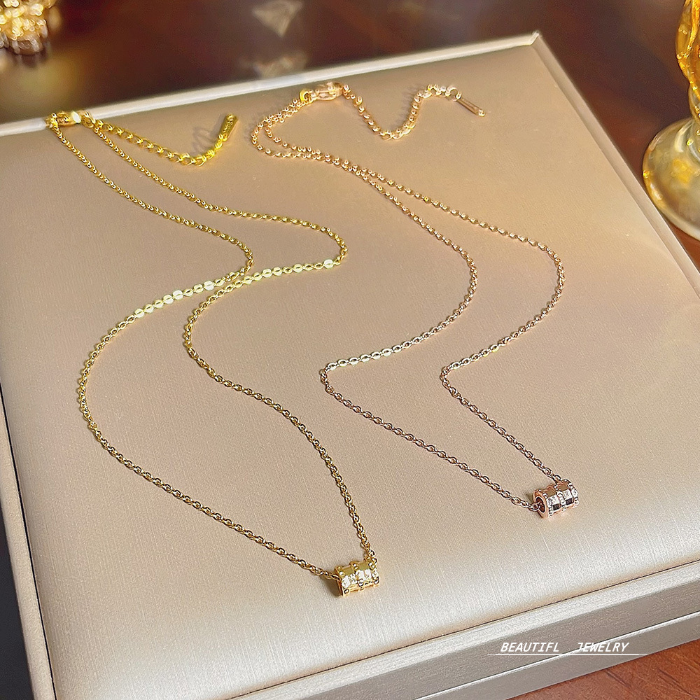 Japanese and Korean Style Light Luxury High-grade Titanium Steel Necklace 18K Rose Gold Pendant Elegant All-match Niche Design Clavicle Chain