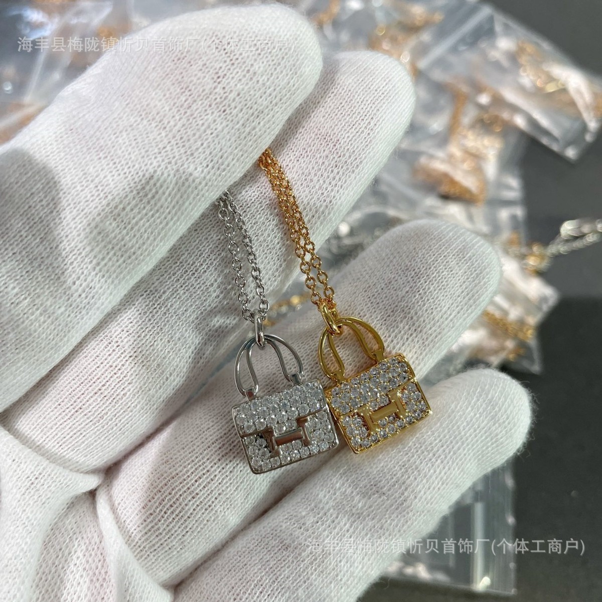 Aijia In-Stock Light Luxury H Kanken Bag Necklace for Women Niche Design Letter Pendant Rose Gold Full Diamond Clavicle Chain