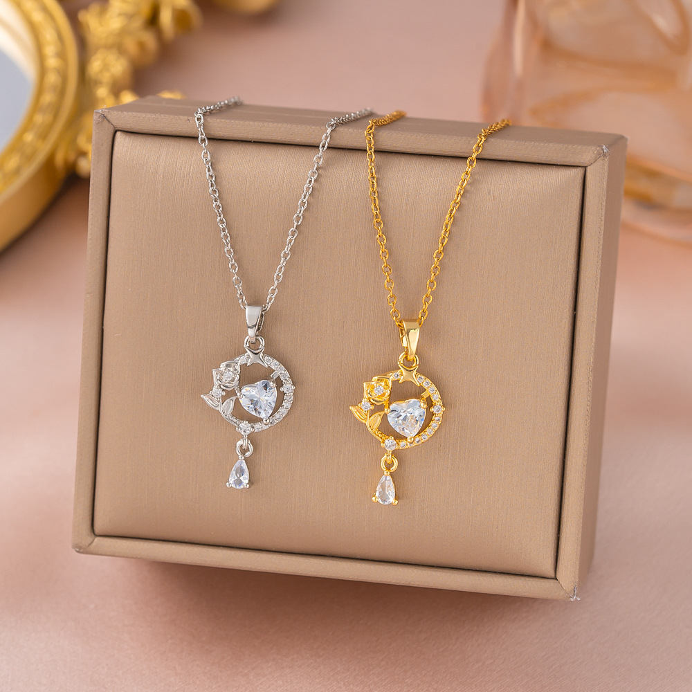 French Romantic Heart-Warming Rose Tassel Sparkling Diamond Micro-Embellished Necklace for Girls Light Luxury New Dreamy High-End Clavicle Chain