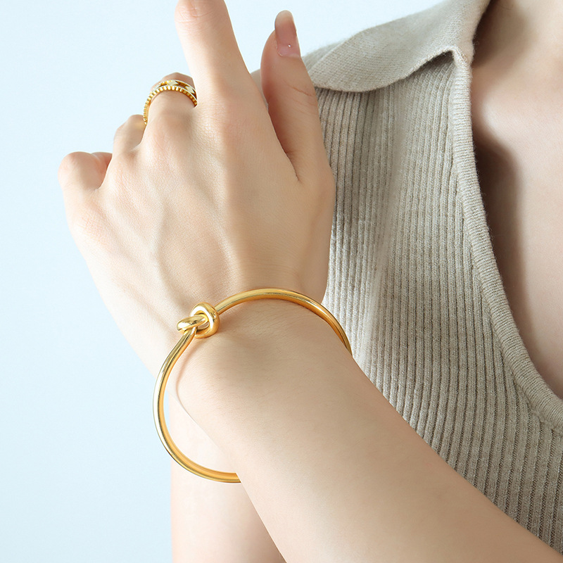 European and American ins elegant personality fashion thick and thin open knotted bracelet titanium steel plated 18K gold Non-fading bracelet Z128