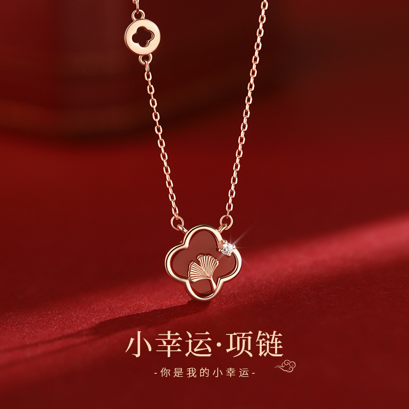 High Version V Gold Four-Leaf Clover Necklace Plated with 18K Gold Is a Bracelet Rose Red Chalcedony Agate White Shell Pendant Clavicle Chain