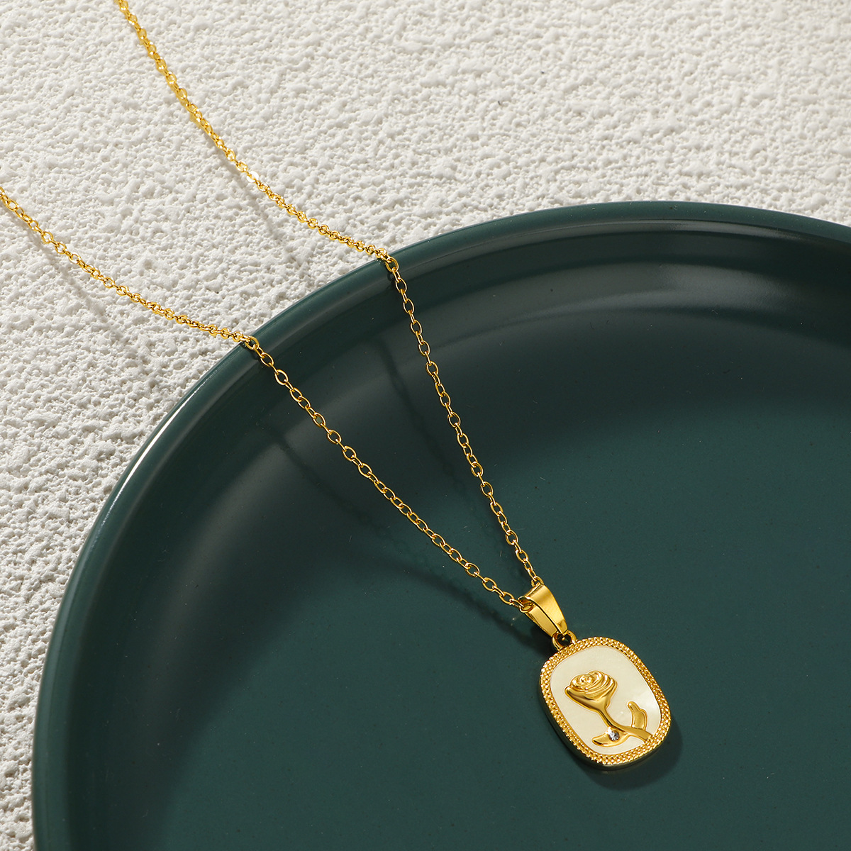 French Style Light Luxury Vintage White Fritillary Rose Necklace Titanium Steel Plated 18K Gold Niche Design All-match Clavicle Chain for Women