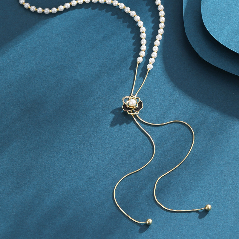 Autumn and Winter New Versatile Rose Flower Woolen Chain Long Pull Adjustable Necklace Atmospheric Fashion Clothes Decorations