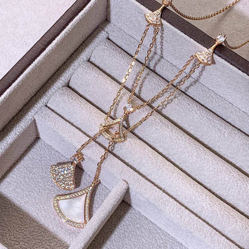 European and American Cross-Border Multi-Fan Double-Layer Skirt Necklace Plated with 18K Rose Gold Accessible Luxury Versatile White Shell Tassel Clavicle Chain for Women