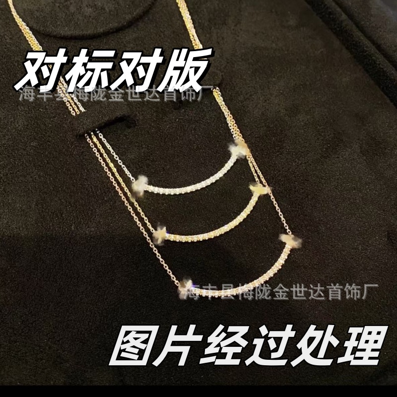 Tijia High Version Smile Necklace Full of Diamonds Plated with 18K Rose Gold Clavicle Chain Versatile Ins Style Birthday Gift for Girlfriend