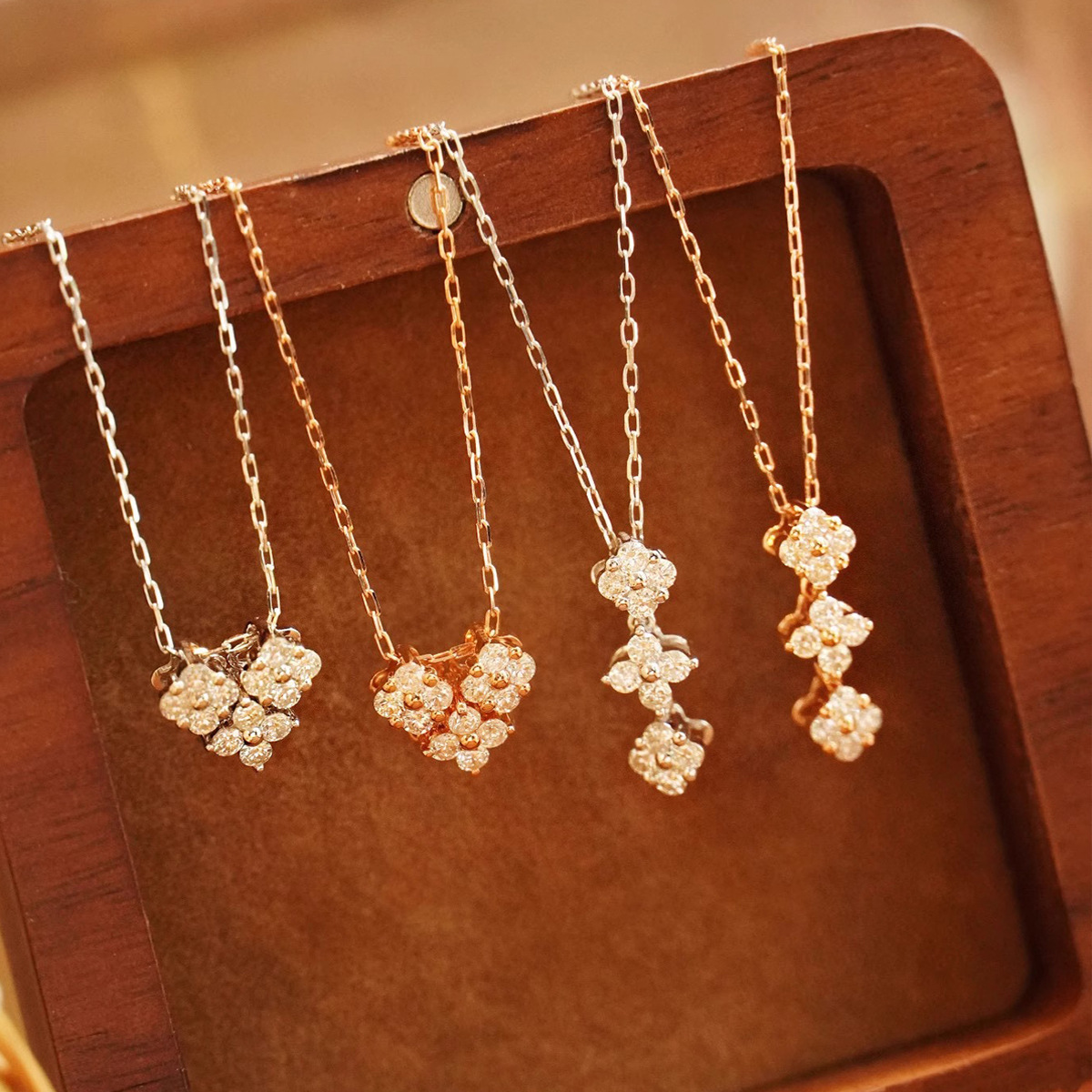 Hot-Selling Gold Store Same Style Clover Single Flower Necklace Laser Clavicle Chain Fashion Simple Popular Live Wholesale Factory