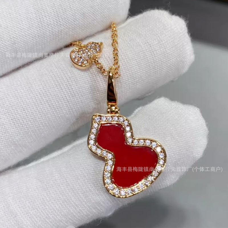 V Gold Q Gourd Necklace Fulu White Mother-Of-Pearl Fashion Carnelian Female 925 Silver Plated 18K Gold Rose Gold Cnc Carved