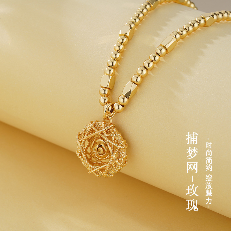Dreamweaver Rose Pendant Necklace for Women, Fashionable and Versatile, High-End, Light Luxury, Hollow Design Clavicle Chain