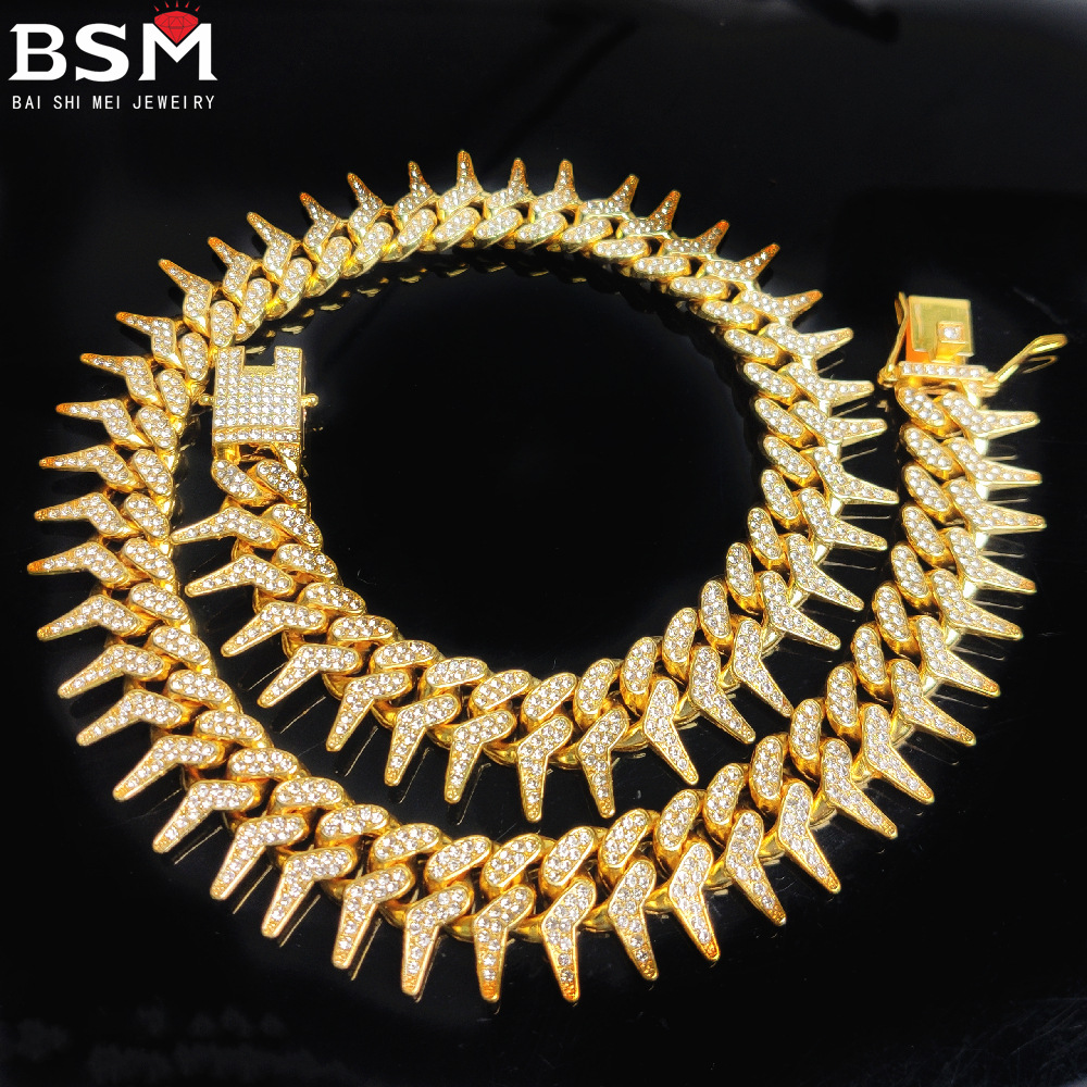 New Street hipster 12.5mm European and American Amazon Double Row Diamond Alloy Hip Hop Cuban Chain Bracelet Necklace