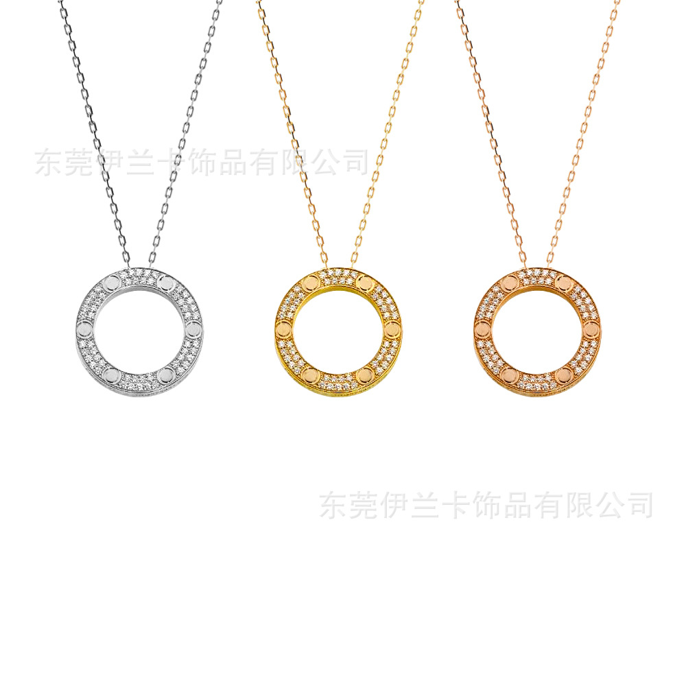 Large Pancake Necklace, Light Luxury Titanium Steel Round European and American Style Personalized Starry Sky Pendant, Classic Love Stainless Steel in Stock
