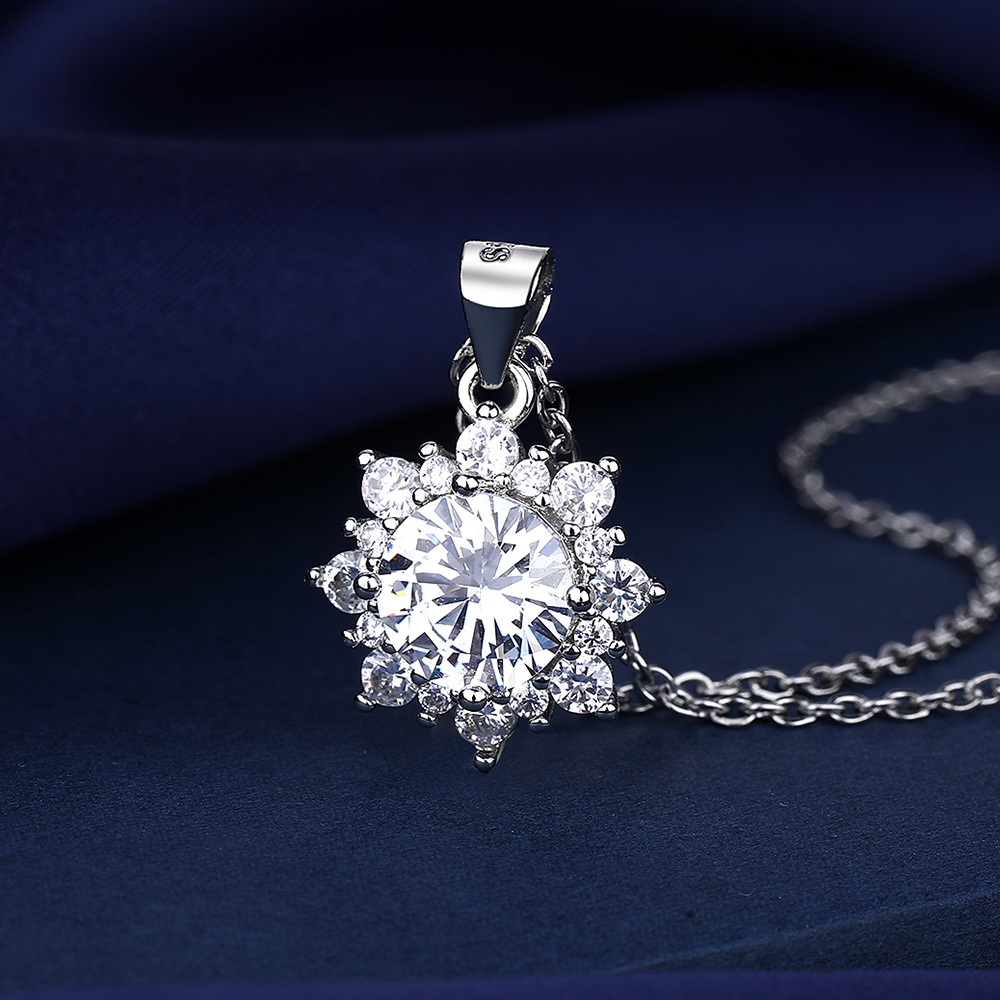 Korean 2023 Fashion Korean Necklace Sunflower Mosang Women's 2 Karat Pendant Diamond High-end Light Luxury Wholesale