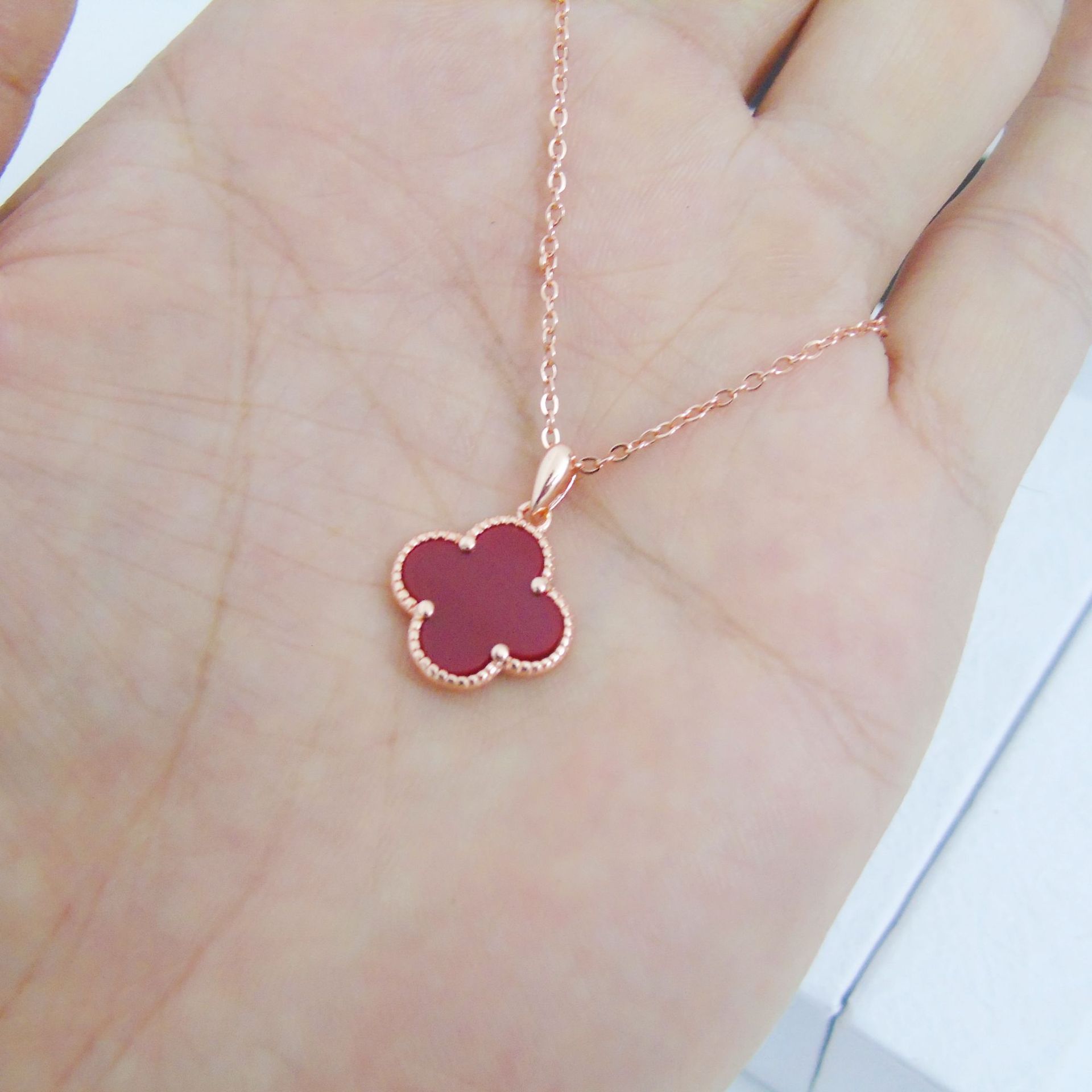 European and American Cross-Border Four-Leaf Clover Necklace, Fashionable Leaf Red Pendant, Rose Gold Clavicle Chain, Holiday Gift for Best Friend
