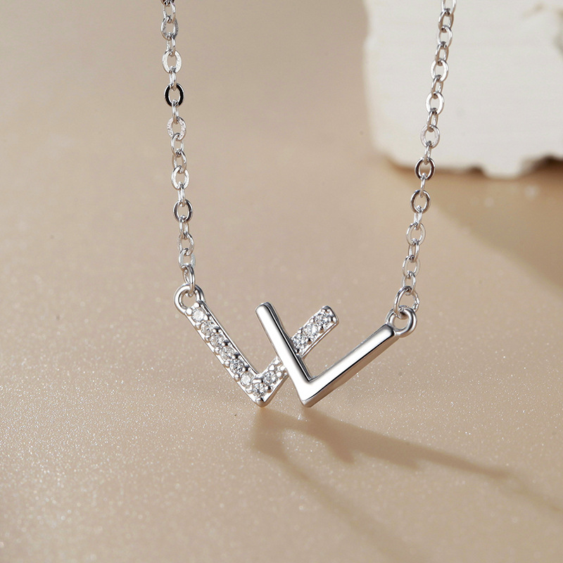 S999 sterling silver diamond-embedded double V-shaped female W necklace Internet celebrity fashion temperament niche design sense ins clavicle chain gift