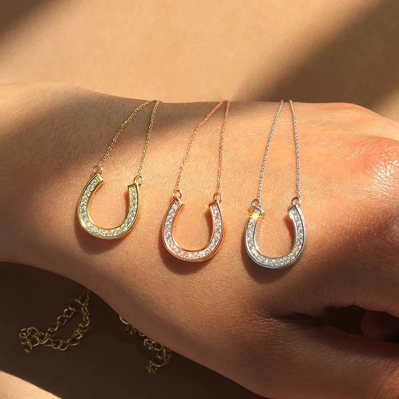European and American Horseshoe U-Shaped Necklace for Women, Simple and Accessible Luxury Micro-Encrusted Zircon Pendant Clavicle Chain, Valentine's Day Gift for Girlfriend