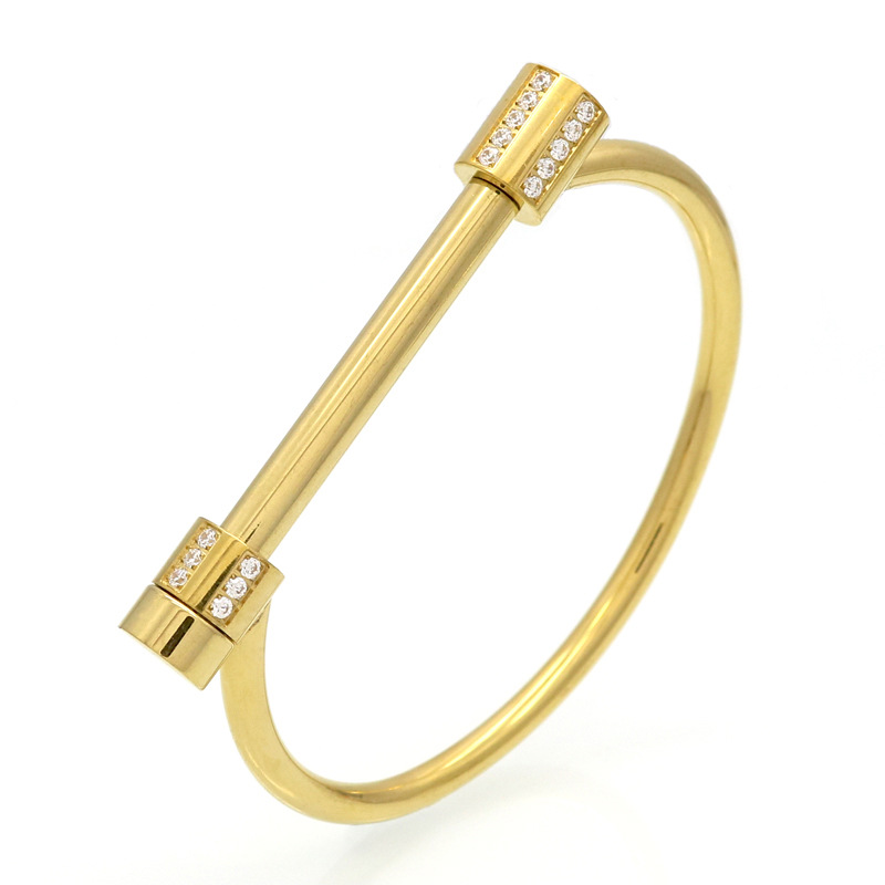 New titanium steel D-shaped horseshoe buckle CNC diamond gold-plated bracelet women's screw stainless steel jewelry zircon couple bracelet