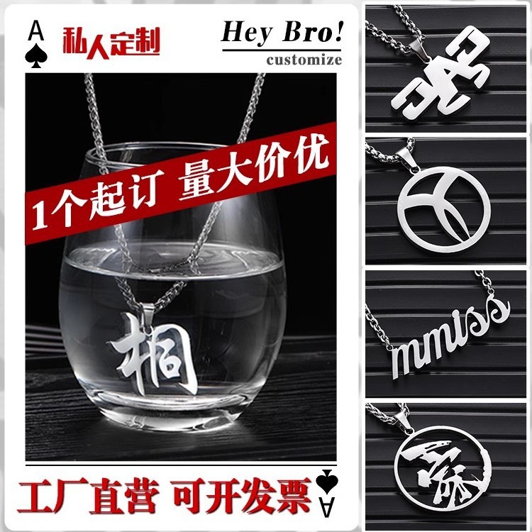 DIY Custom-Made Hip-Hop Titanium Steel Necklace with Name and Letters Customized Bar Pendant and Disco Pendant