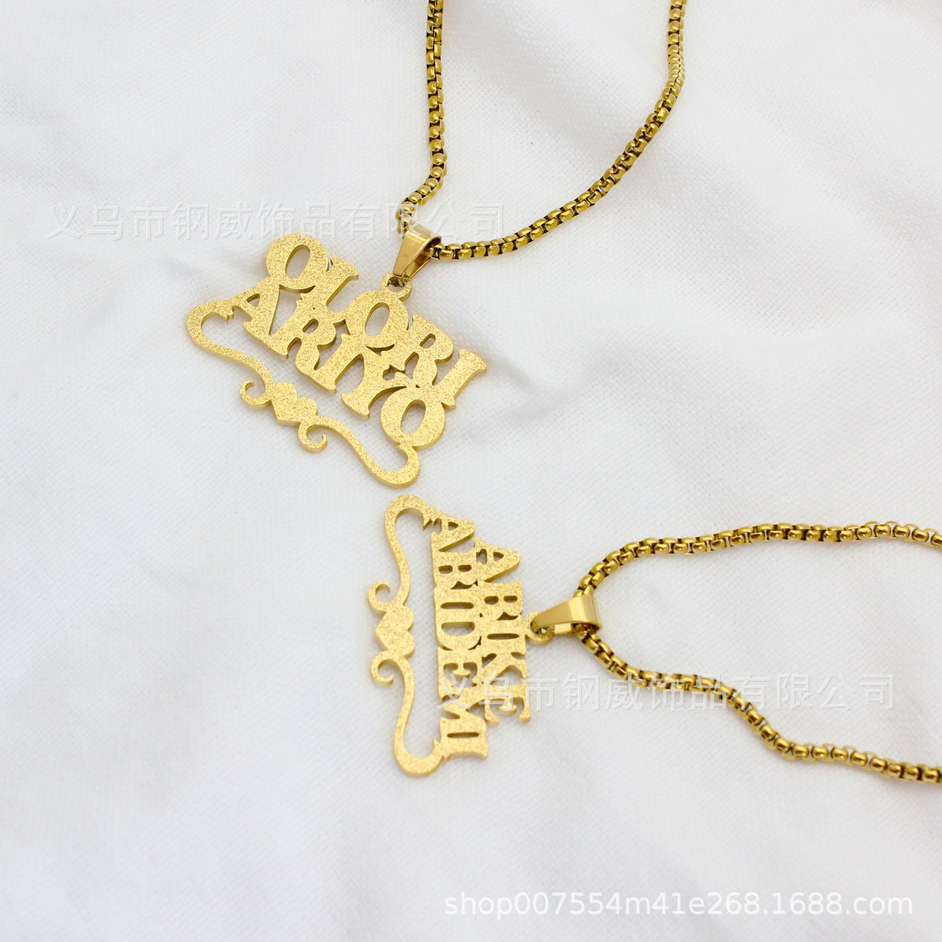 304 Stainless Steel Frosted Letter Necklace Customized Name 18K Gold Pendant Frosted Matte Shiny