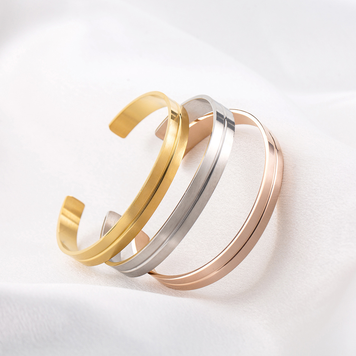 Cross-border Hot Selling Fashion Simple Men's Bracelet European and American Personality Metal Style Stainless Steel Geometric Groove C- shaped Bracelet