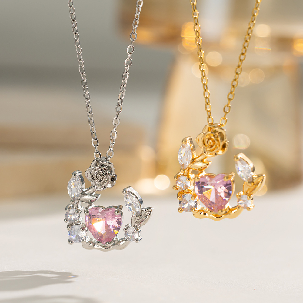 New Love Rose Wreath Necklace Women's High-grade Light Luxury All-match Rose Titanium Steel Clavicle Chain Instagram Style Niche