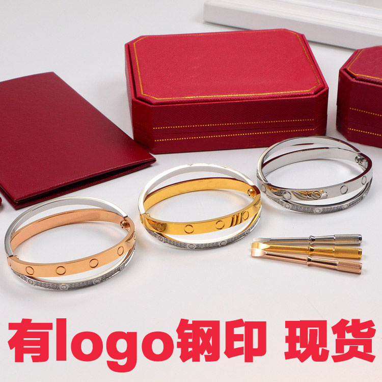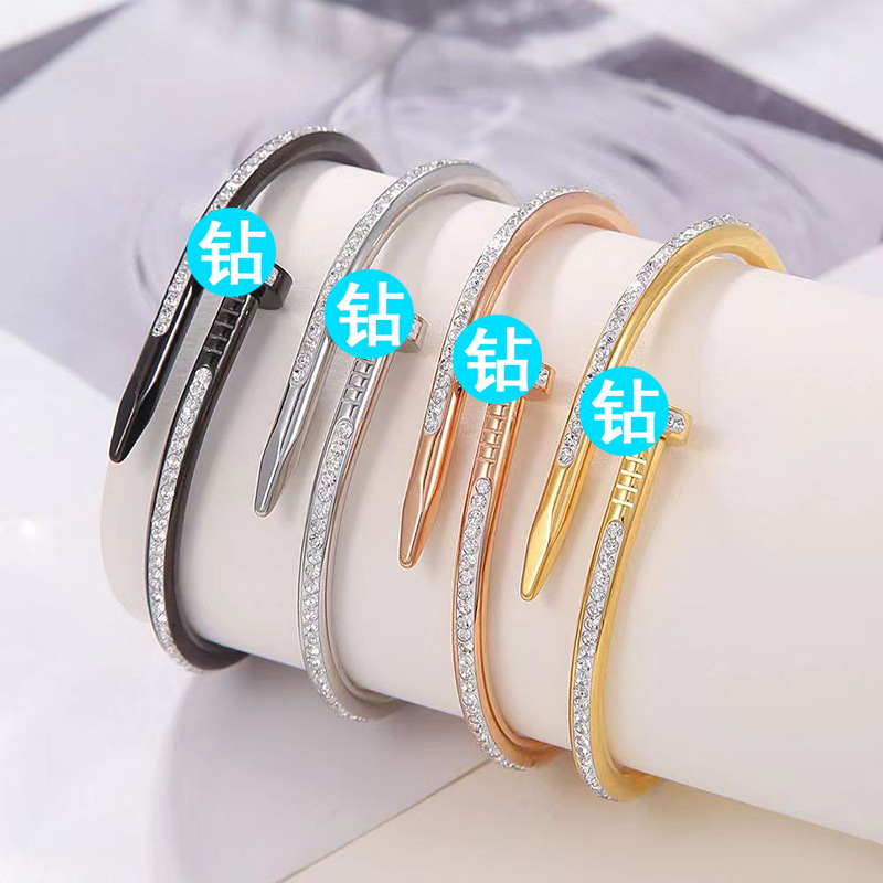 Cross-border classic mud diamond titanium steel bracelet women's rose gold non-fading high-end fashion card home nail bracelet