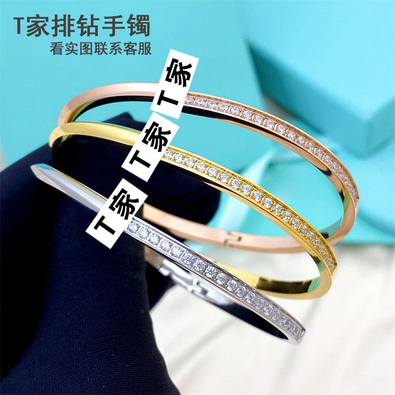 T Home Narrow Edition Diamond Single Rest Diamond Bracelet Snap Couple Bracelet Rose Gold Fashion Rough Edition European and American Bracelet in stock