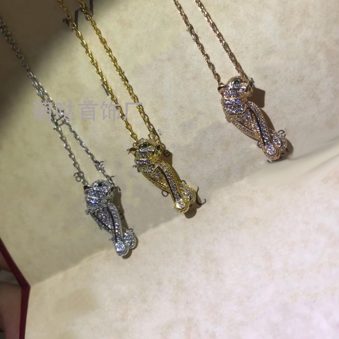 High version card V gold shy leopard wish popular jewelry European and American popular luxury unique leopard head necklace Diamond-embedded jewelry