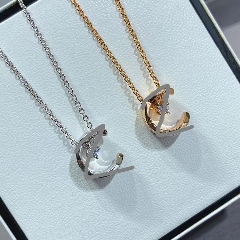 Xiangjia high version coco smooth rhombus middle diamond ice water moon necklace carved neck chain platinum rose clavicle chain