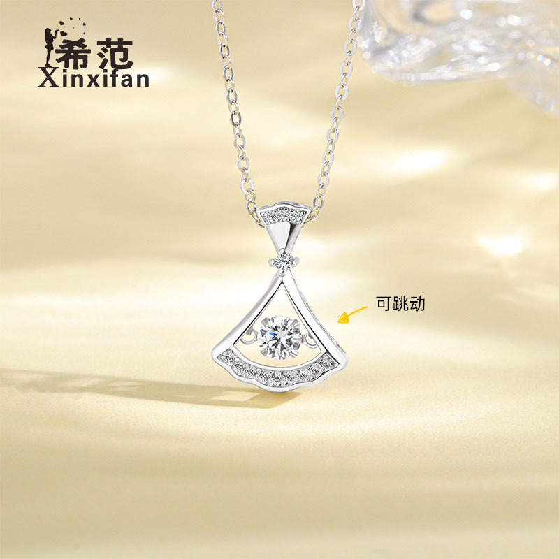 S925 Sterling Silver Beating Heart Necklace Women's Summer High-end Super Flash Smart Pendant Exquisite Simple Cross-border Silver Jewelry