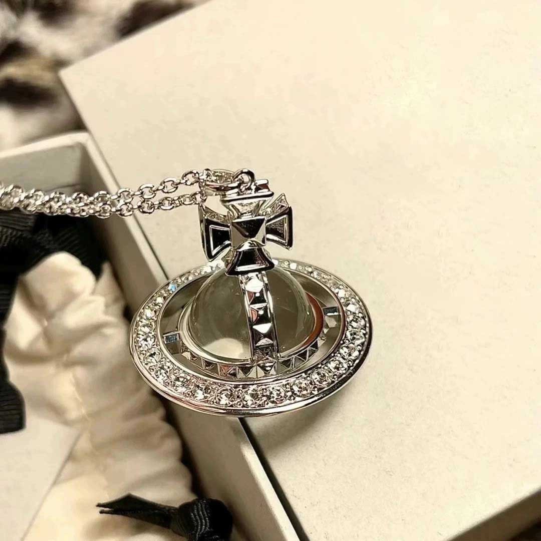 Empress Dowager Pina Large Rivet Stereo Saturn Orb Planet Necklace for Lovers Niche Clavicle Chain Woolen Chain