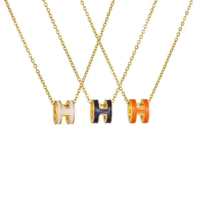 Enamel H Letter Necklace Women's All-match High-end Temperament Light Luxury All-match Simple Oil Dropping Titanium Steel Clavicle Chain Wholesale