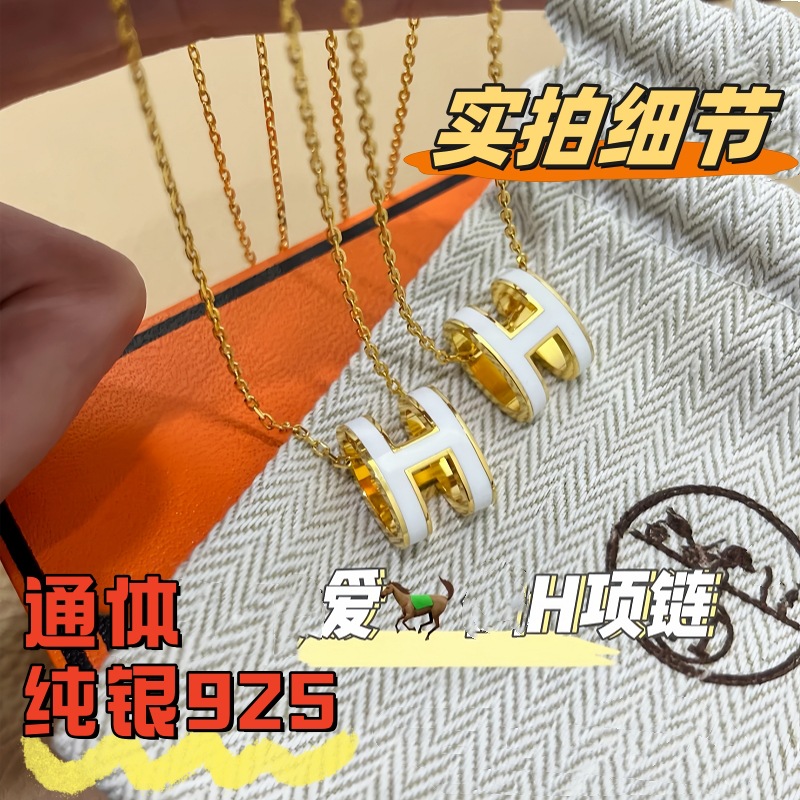 Aijia H Necklace Women's Sterling Silver 925 Enamel Pendant Accessible Luxury Versatile Non-Fading Mini Clavicle Chain Gift for Girlfriend