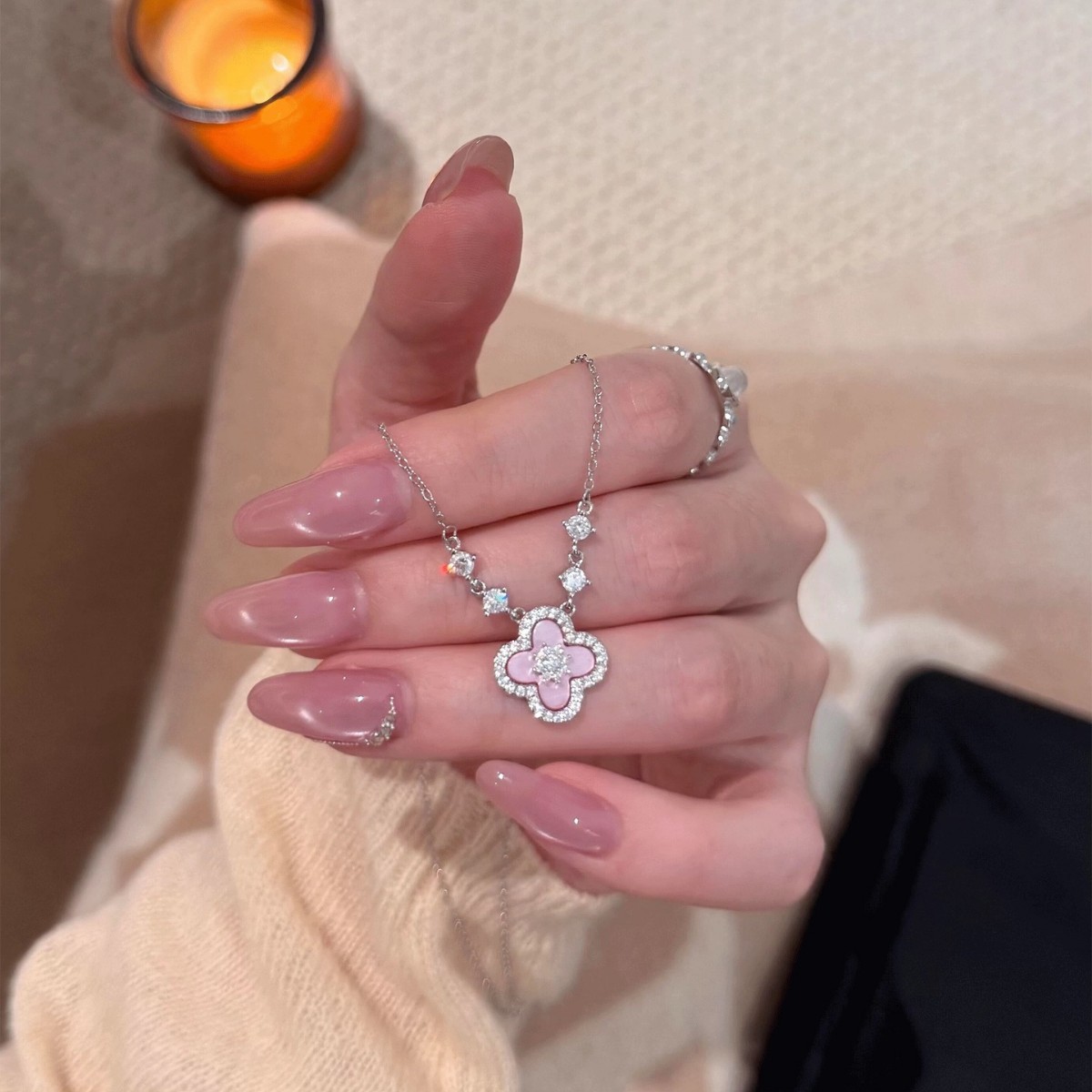 Pink Resin Clover Necklace for Women, Fashionable Niche Light Luxury Design Clavicle Chain, Personalized High-End Trendy Choker