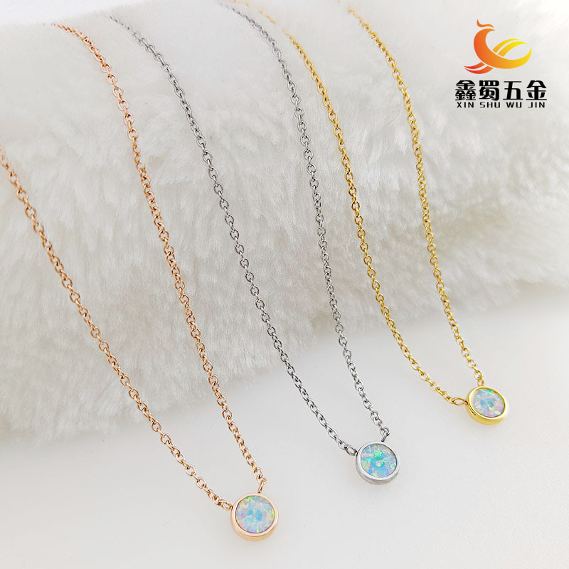 First Jewelry Stainless Steel Necklace Australian Baocai Stone Clavicle Chain Titanium Steel Jewelry ins Round Opal Necklace