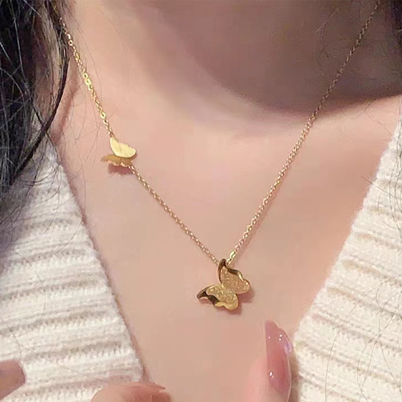 Double-layer three-dimensional frosted butterfly necklace simple clavicle chain niche design sense light luxury titanium steel 2023 new accessories