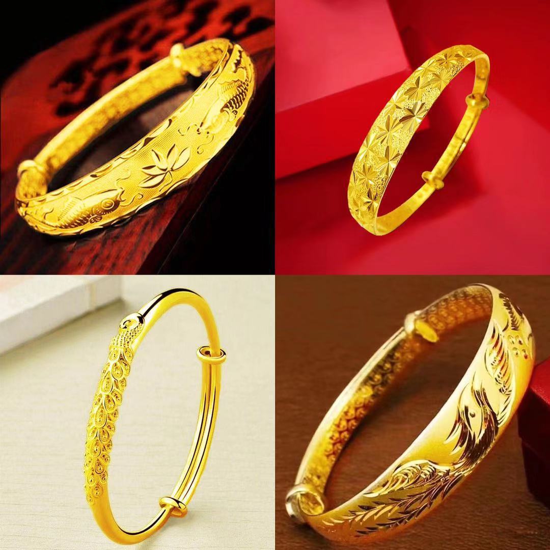 Gold-Plated Bracelet, Dragon and Phoenix, Gypsophila, Meteor Shower, Dragon and Phoenix, Round Glossy Push