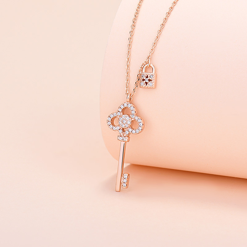 Three Silversmith Necklace Women's 2021 New Style Personalized Micro-inlaid Zircon Key Chains Fashionable Trendy Jewelry