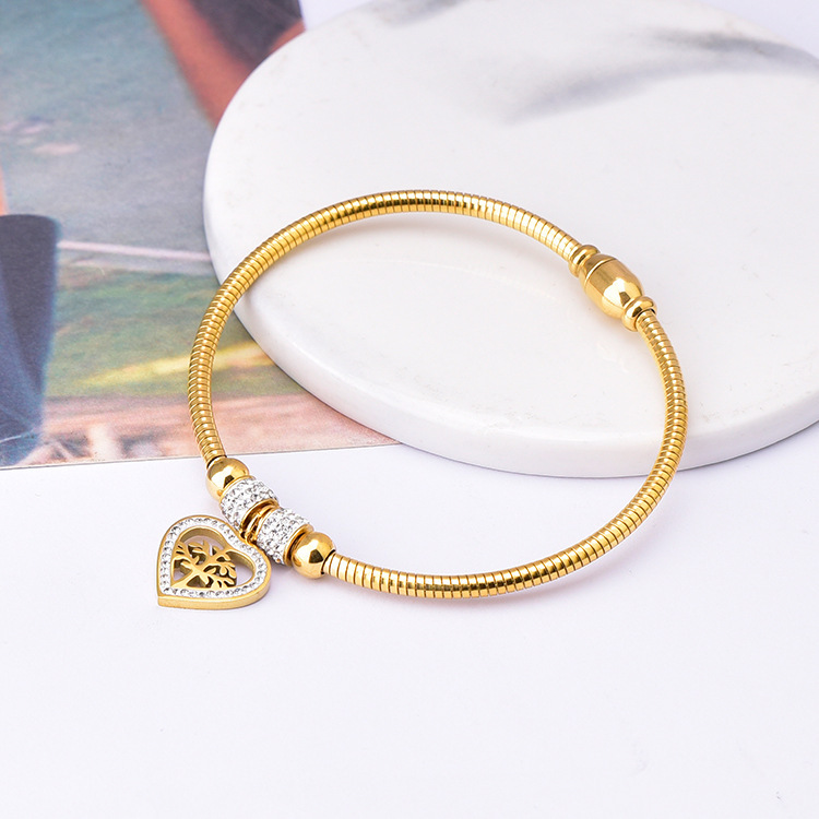 Half Circle Full Diamond Color Gold Rose Gold Bracelet Women's Titanium Steel Bracelet Korean Fashion Trendy People's Color-free Internet Celebrity Bracelet