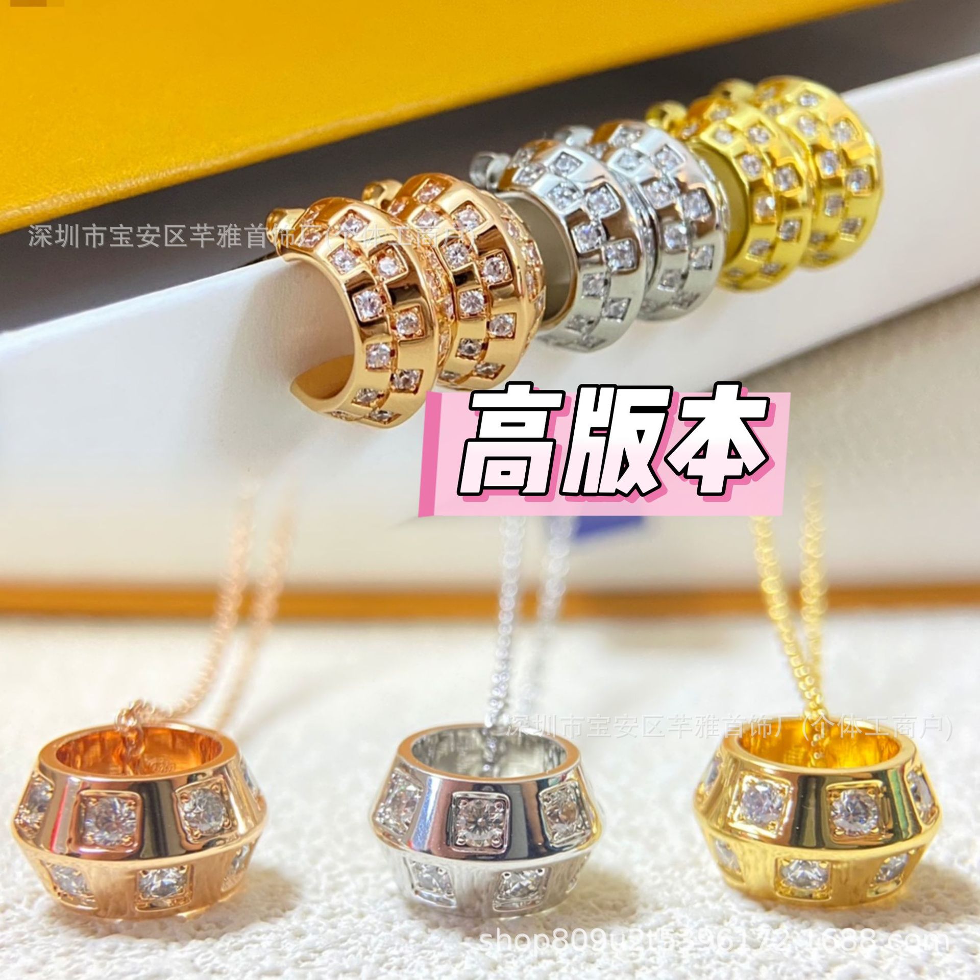 Donkey House 2025 New Checkerboard Diamond Necklace Fashion Versatile High-End Lu Lu Tong Wang Hedi Same Style Earrings Necklace