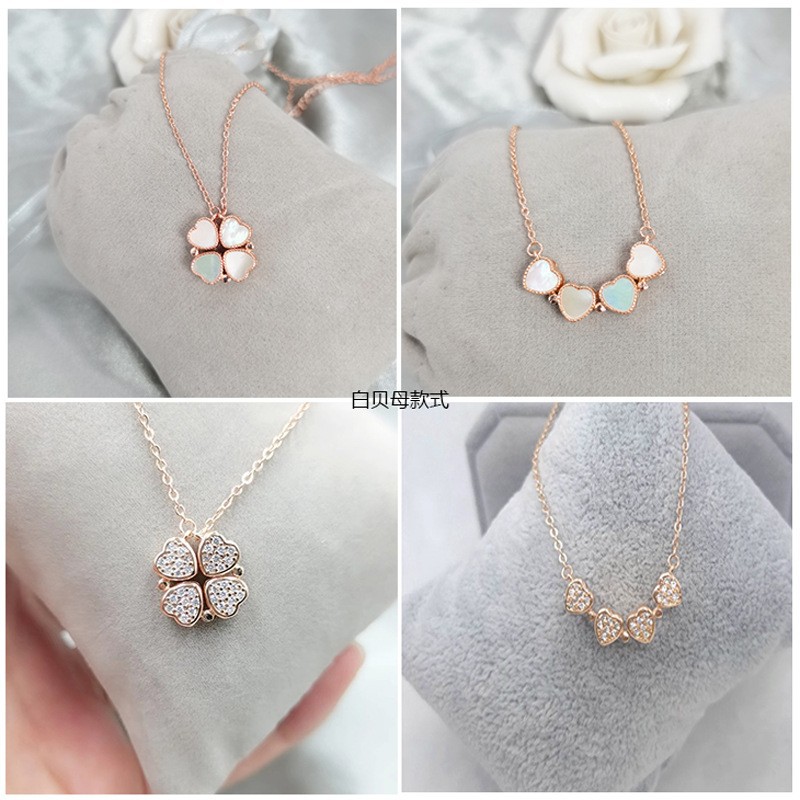New four-leaf clover necklace double-sided foldable heart-shaped fritillary clavicle chain for women