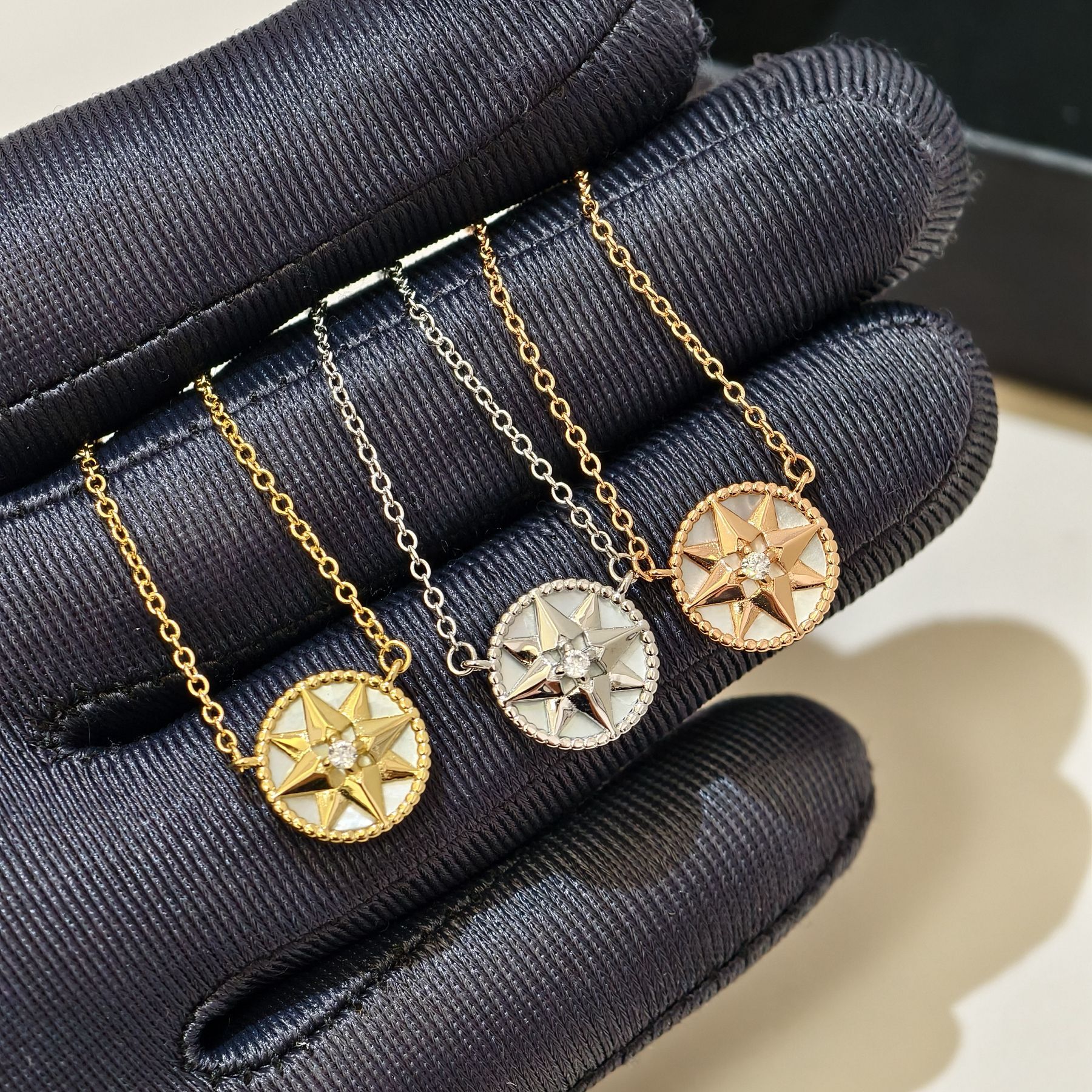 High-End Dijia Compass Eight-Pointed Star White Mother-Of-Pearl Necklace for Women, 18K Thick Gold-Plated Pendant, Round Clavicle, Wholesale from Manufacturer