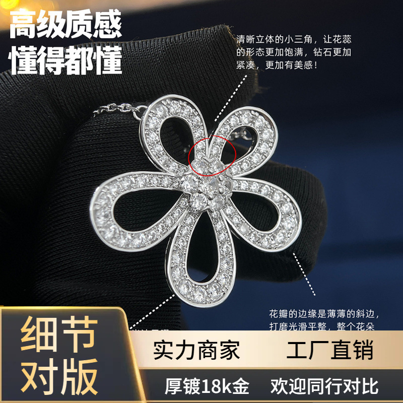 New Product Source 925 Sterling Silver Four-Leaf Clover One-Piece Two-Wear Necklace Elegant Tassel Pendant Clavicle Chain Birthday Seven