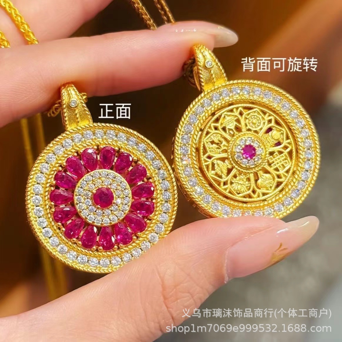 Fashionable Sand Gold Jewelry with Diamond-Encrusted Rotating Rose Window Pendant, Eight-Treasure Compass Necklace for Women, Light Luxury Double-Sided Sweater Chain