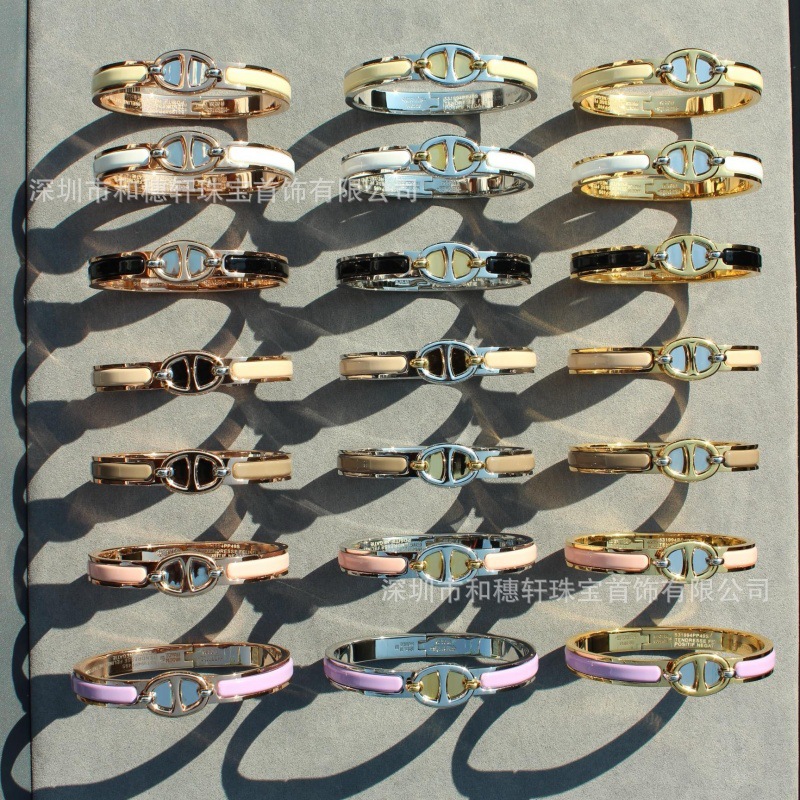 High Version Enamel Pig Nose Bracelet for Men and Women, Light Luxury, Versatile, Non-Fading, Factory Direct Sales, Real Gold Plated