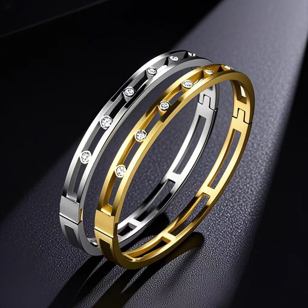 Cross-Border Hot-Selling Stainless Steel New Women's Diamond-Encrusted Hollow Bracelet Titanium Steel Non-Fading European and American Fashion Bracelet