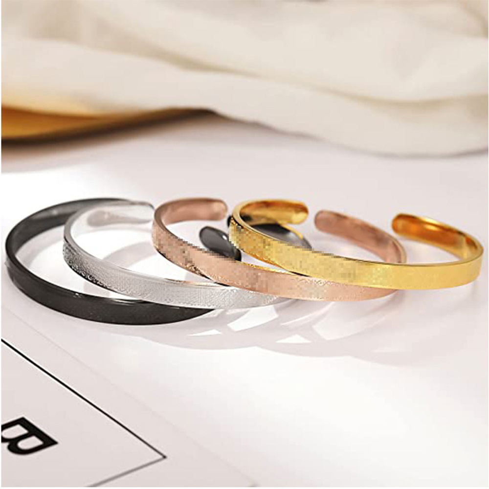 Cross-Border Titanium Steel Simple and Fashionable English Lettering Cuff Bracelet Gold Couple Open C-Shaped Titanium Steel Bracelet Versatile