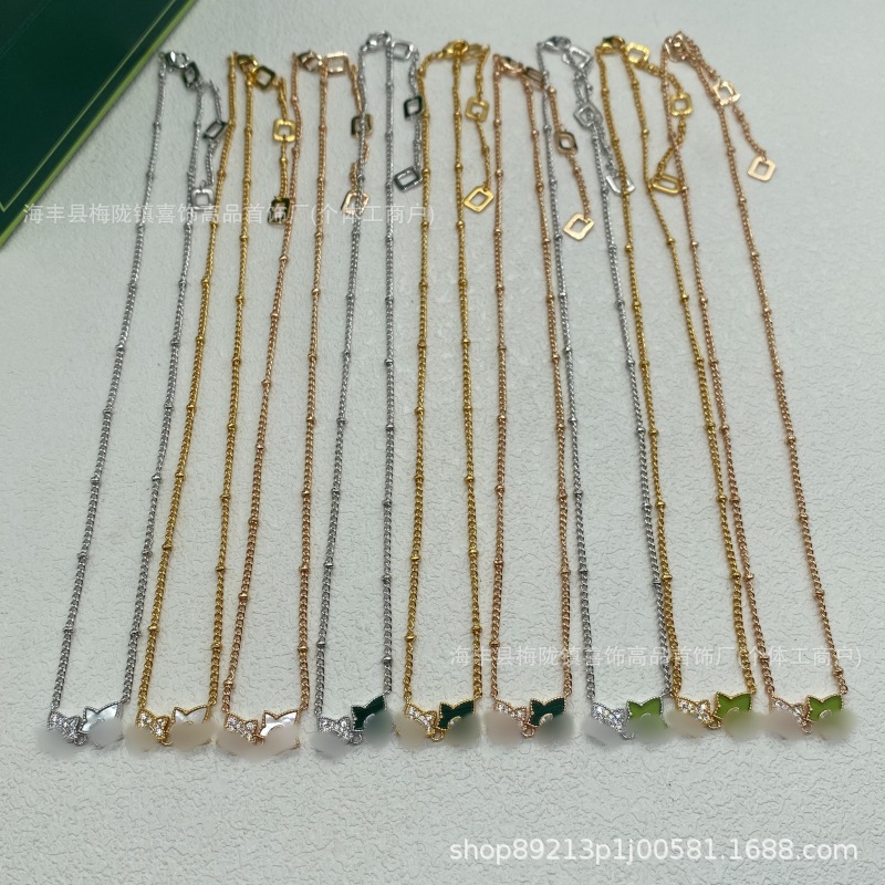 Evergreen Ivy Necklace for Women, Double Leaf Grass White Mother-Of-Pearl Clavicle Chain, Niche to Luxury High-End Feel, 18K Thick Gold Factory Direct Sale